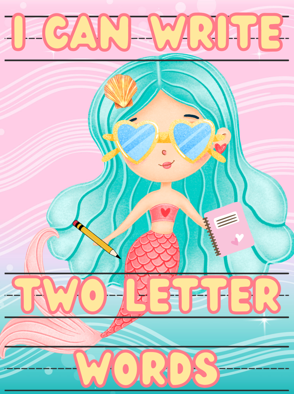 I Can Write Two Letter Words | Mermaid Under The Sea Tracing Practice Worksheet Workbook | Learn How To Write Recognize Sight | Homeschool Preschool Pre-K Kindergarten | Ages 3-6